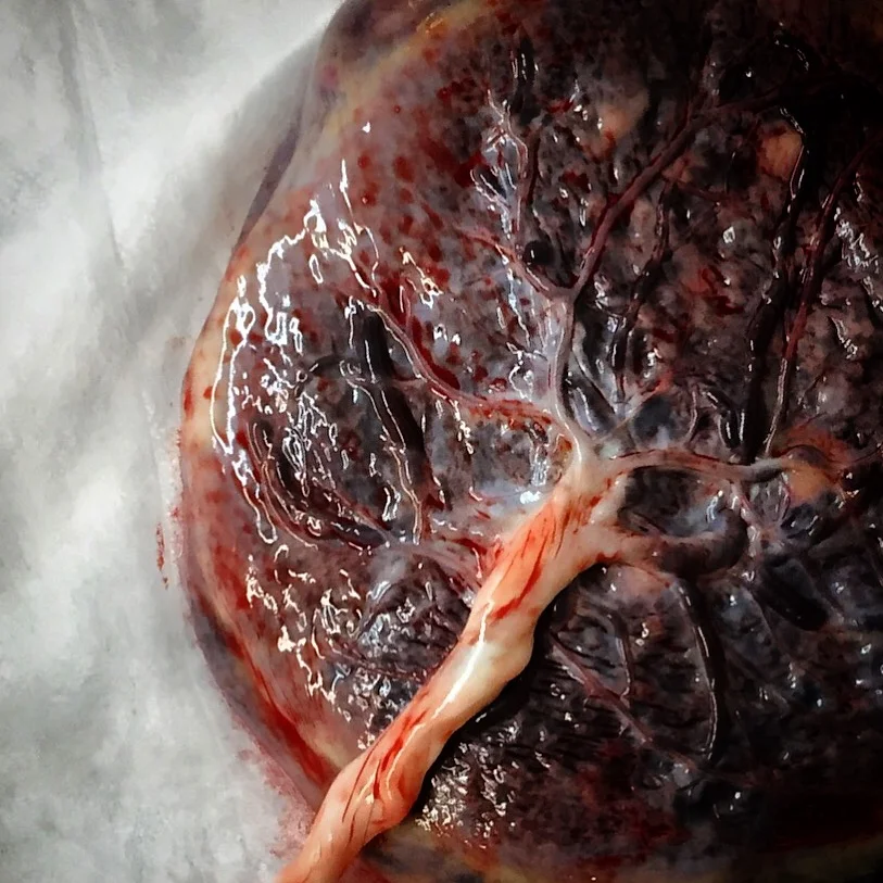 - 1 piece of raw placenta, left in refrigerator or freezer after birth